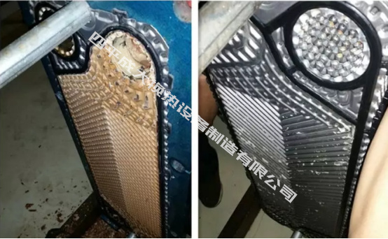 板式熱交換器由于長(zhǎng)時(shí)間工作,傳染板片表面將產(chǎn)生不同程度的污垢或沉積物,從而增加流阻和降低傳熱性能,主要表現(xiàn)為進(jìn)出口壓力表壓差增大和冷介質(zhì)出口溫度降低,因此必須對(duì)其檢查清洗。